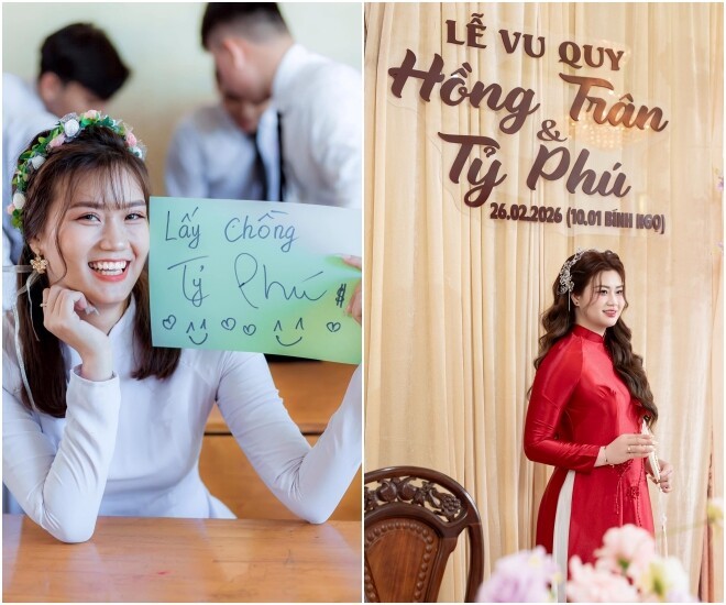 Vừa qua, mạng xã hội đang truyền tay nhau hình ảnh một cô gái trong lễ tốt nghiệp năm 18 tuổi, trên tay cầm tấm bảng ghi dòng chữ: “Lấy chồng Tỷ Phú”. Đáng chú ý, sau 7 năm, điều ước ấy đã “thành sự thật” khi cô thực sự kết hôn với một chàng trai tên… Tỷ Phú. Cô gái chia sẻ: “Điều ước năm 18 tuổi của mình đã thành sự thật. Còn bạn thì sao?”.