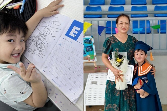 Cậu bé được mẹ khen viết chữ đẹp, ngăn ngắn.