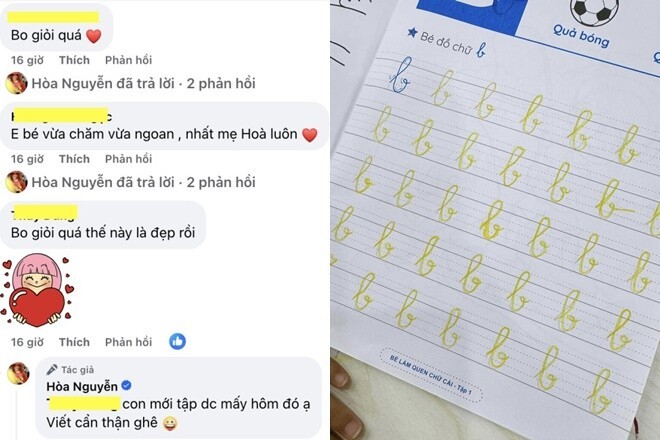Dù còn nhỏ tuổi, bé Bo đã sớm bộc lộ tinh thần tự giác và năng khiếu trong việc học chữ. Hòa Minzy từng chia sẻ hình ảnh quý tử tập viết với thái độ rất tập trung. Nữ ca sĩ bày tỏ sự tự hào khi con trai sở hữu nét chữ rõ ràng, đều tăm tắp và thẳng hàng.