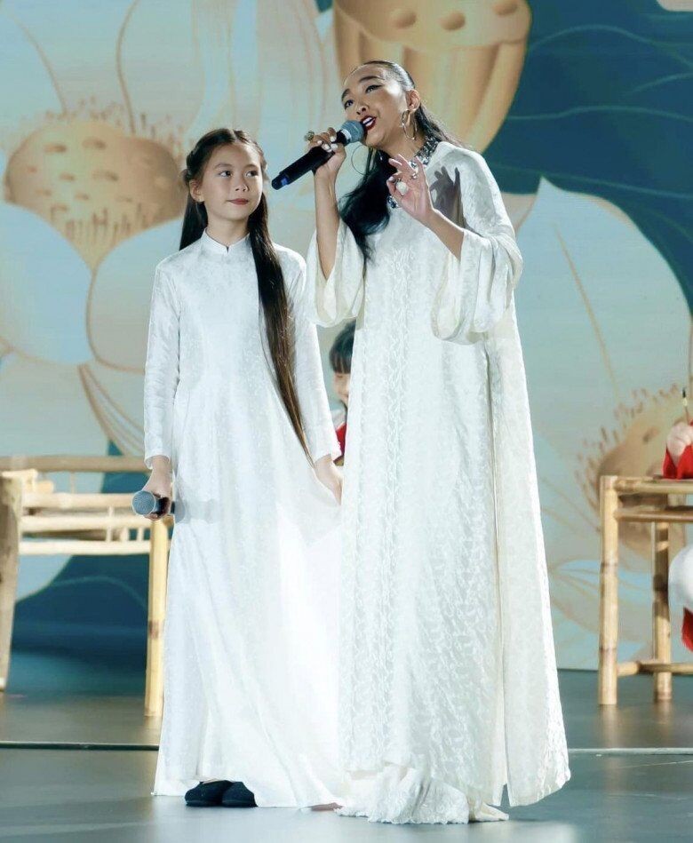 Không chỉ dừng lại ở các tiết mục văn nghệ tại trường, năng khiếu của bé Moon còn được thể hiện rõ qua các video đời thường. Trong đoạn video song ca cùng mẹ ca khúc Nhớ ơn thầy cô, nhóc tì gây ấn tượng với chất giọng vang, trong sáng và khả năng giữ nhịp tốt. Đáng chú ý, Võ Hạ Trâm hài hước cho biết bản thân "bất lực" không thể hát theo vì con gái sở hữu những quãng giọng cao "chót vót".