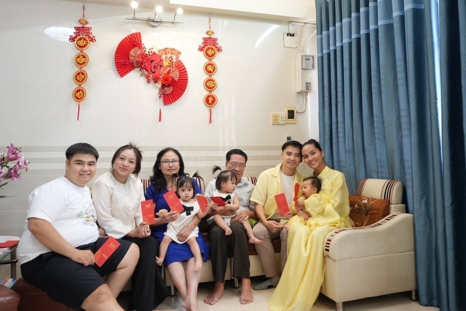Vợ chồng H'Hen Niê chụp ảnh cùng gia đình nhà nội trong ngày đầu năm mới.