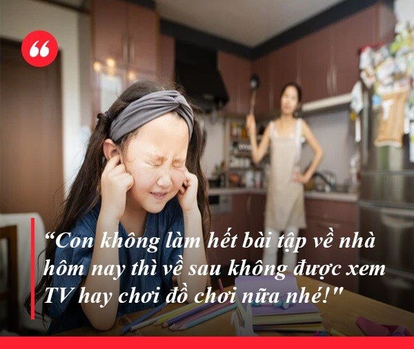 “Con không làm hết bài tập về nhà hôm nay thì về sau không được xem TV hay chơi đồ chơi nữa nhé!"