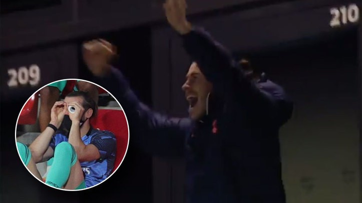 Chứng kiến đội nhà giành chiến thắng đầy cảm xúc trên chấm phạt đền, Bale đã ăn mừng đầy phấn khích.