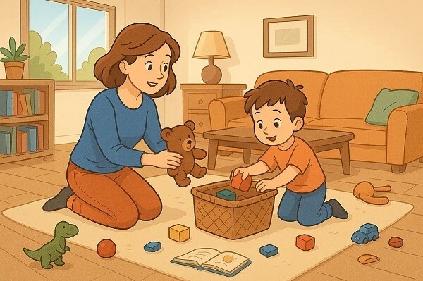 Khi lớn hơn, trẻ dần nhận ra mình là một phần của gia đình. Những việc nhỏ như đổ rác, dọn bàn ăn hay phụ giúp việc nhà là cách trẻ học trách nhiệm với gia đình.