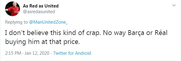 "Tôi không thể tin mấy cái tin vớ vẩn này. Chẳng đời nào mà những Barcelona hay Real Madrid chấp nhận bỏ ra số tiền như thế để mua cậu ta đâu."