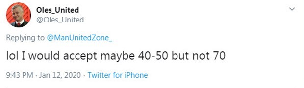 "Tôi có thể chấp nhận mức 40-50 triệu bảng, nhưng 70 triệu bảng thì không."