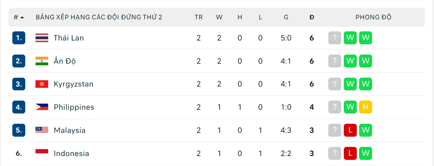 Theo BXH hiện tại, đội nhì bảng có thành tích kém nhất và sẽ bị loại là Indonesia với 3 điểm và hiệu số 0. Giả thuyết nếu ĐT Thái Lan để thua Uzbekistan ở trận đấu cuối với tỷ số 0-3 và Indonesia thắng với cách biệt 3 bàn trở lên, Voi chiến hoàn toàn có thể bị loại. Đương nhiên cũng phải cần thêm điều kiện các đội nhì bảng khác đều có thành tích tốt hơn Thái Lan sau khi kết thúc 3 lượt trận.