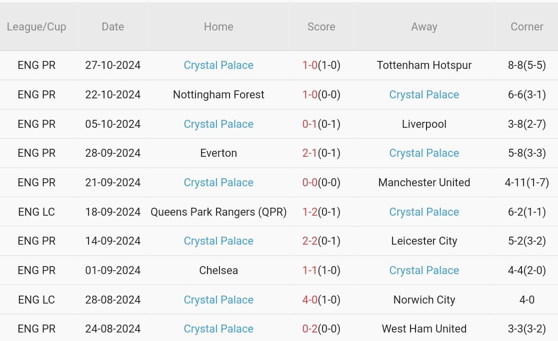 - Tính trên mọi đấu trường, Palace chỉ thắng 1/5 trận gần nhất.