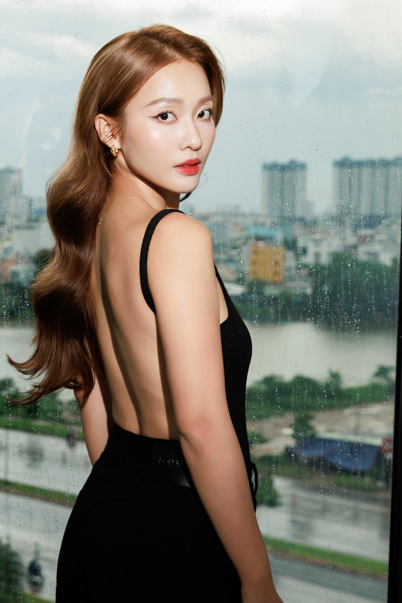 Dù không sở hữu vòng một quá nổi bật, nữ diễn viên vẫn toát lên sức hấp dẫn riêng nhờ tỷ lệ cơ thể cân đối. Đặc biệt, thiết kế ôm sát giúp cô khéo léo khoe đường cong cơ thể, nhất là phần eo thon và võng lưng mềm mại đầy cuốn hút.