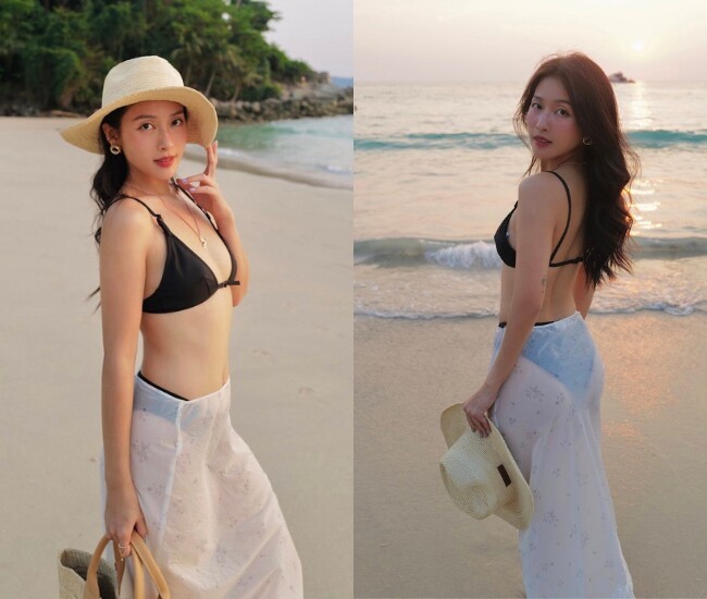 Mới đây, trên trang cá nhân, Khả Ngân tiếp tục khiến người hâm mộ "bỏng mắt" khi chia sẻ loạt ảnh diện bikini thả dáng tại bãi biển Phuket, Thái Lan. Trong loạt ảnh được đăng tải, nữ diễn viên diện bikini nhỏ xíu kết hợp cùng chân váy mỏng.