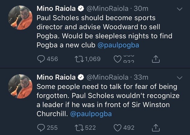 Theo cựu danh thủ Anh, Paul Pogba đã không đáp ứng được kỳ vọng và không thể hiện hết khả năng mà mình có. Ngay lập tức, "siêu cò" Mino Raiola lên tiếng đáp trả Paul Scholes sau những lời phê bình cựu tiền vệ Juventus.