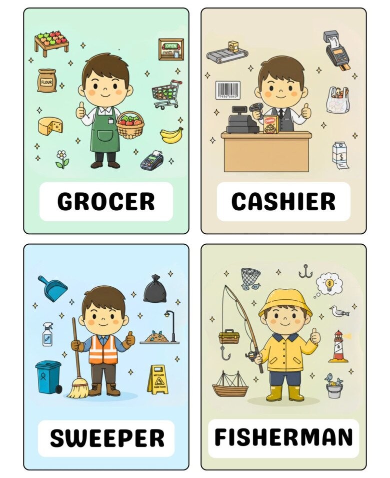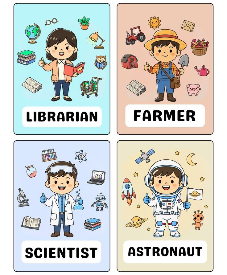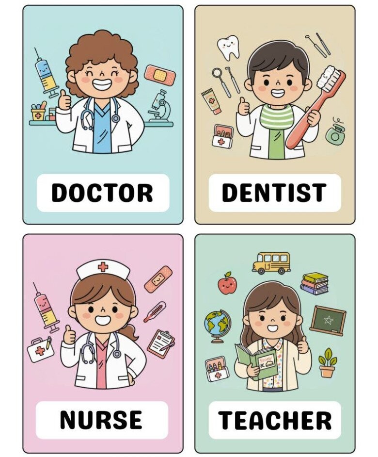 Trong những năm đầu đời, trẻ nhỏ luôn tò mò về thế giới xung quanh. Các em thường đặt ra nhiều câu hỏi như: “Bác sĩ làm gì?”, “Cô giáo dạy ở đâu?”. Việc giúp trẻ hiểu về các nghề nghiệp trong xã hội nhằm mở rộng nhận thức, nuôi dưỡng ước mơ và định hướng tương lai. Một trong những phương pháp đơn giản, trực quan và hiệu quả để trẻ tiếp cận với các nghề nghiệp chính là tranh flash card.