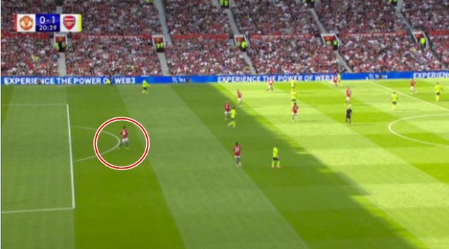 Bắt nguồn từ tình huống phát bóng của Andre Onana, Pháo thủ đã cướp được bóng nơi khu vực giữa sân và lập tức phát động một đợt lên bóng nhanh. Nhận thấy Casemiro đang đứng sau hàng phòng ngự Quỷ đỏ, Ben White thực hiện đường chuyền thuận lợi xuống hành lang phải để Kai Havertz xâm nhập vòng cấm, trước khi tung ra đường chuyền dọn cỗ để Leandro Trossard thoải mái ghi bàn.