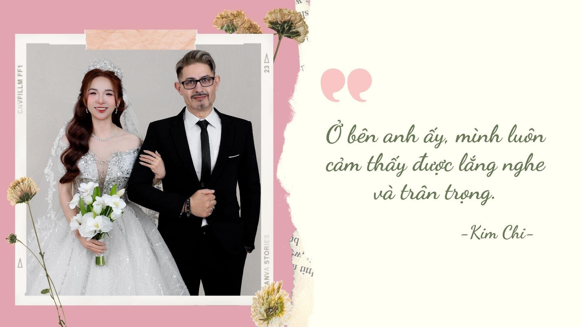 Khi được hỏi về bí quyết để giữ gìn một cuộc hôn nhân hạnh phúc, đặc biệt là khi hai người mang quốc tịch khác nhau, Kim Chi cho rằng yếu tố quan trọng nhất chính là sự tôn trọng, thấu hiểu và tin tưởng. Bên cạnh đó, sự kiên nhẫn trong giao tiếp, khả năng chấp nhận khác biệt và tinh thần cùng nhau vượt qua khó khăn cũng đóng vai trò không thể thiếu.