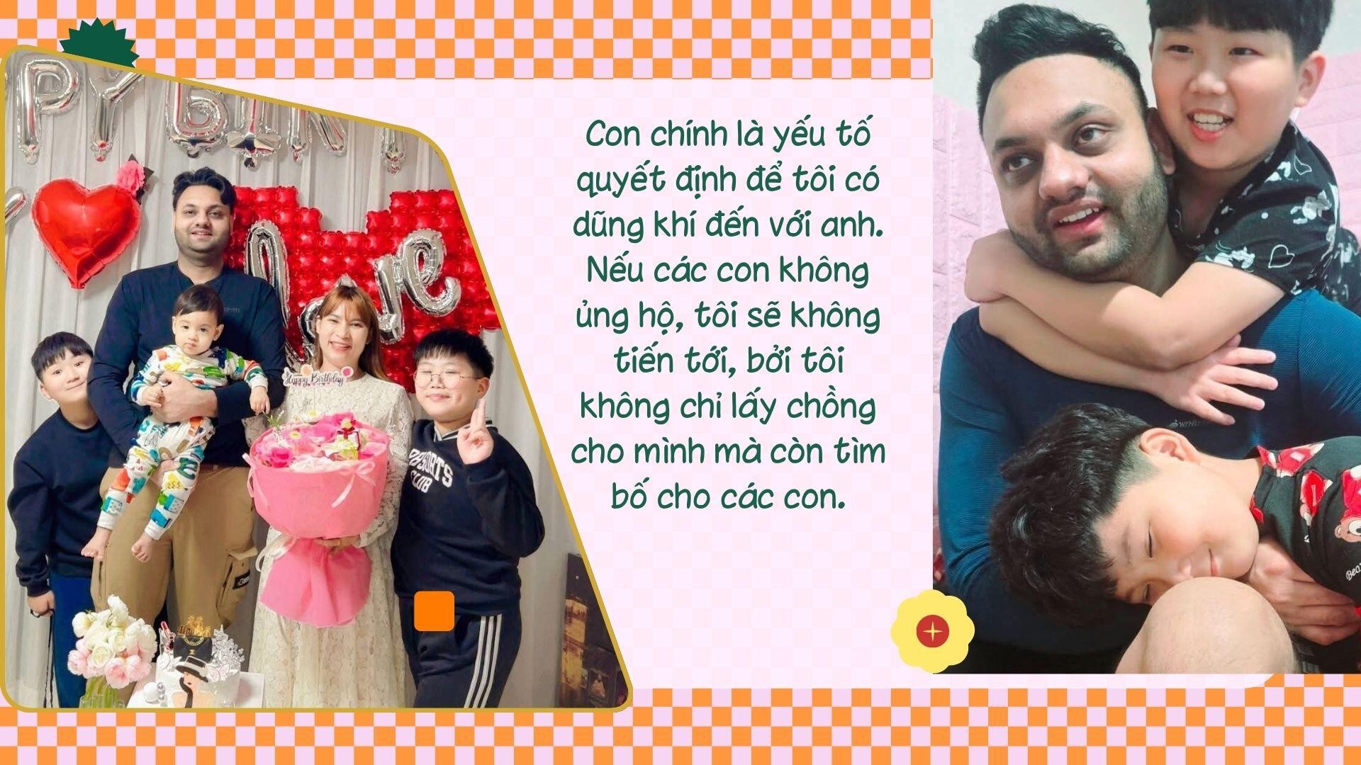 May mắn là các con chị cũng rất quý Aman, gọi anh là bố một cách tự nhiên và vui vẻ, gần như không có khoảng cách. Gia đình chị cũng ủng hộ mối quan hệ này. “Con chính là yếu tố quyết định để tôi có dũng khí đến với anh. Nếu các con không ủng hộ, tôi sẽ không tiến tới, bởi tôi không chỉ lấy chồng cho mình mà còn tìm bố cho các con”, chị chia sẻ.
