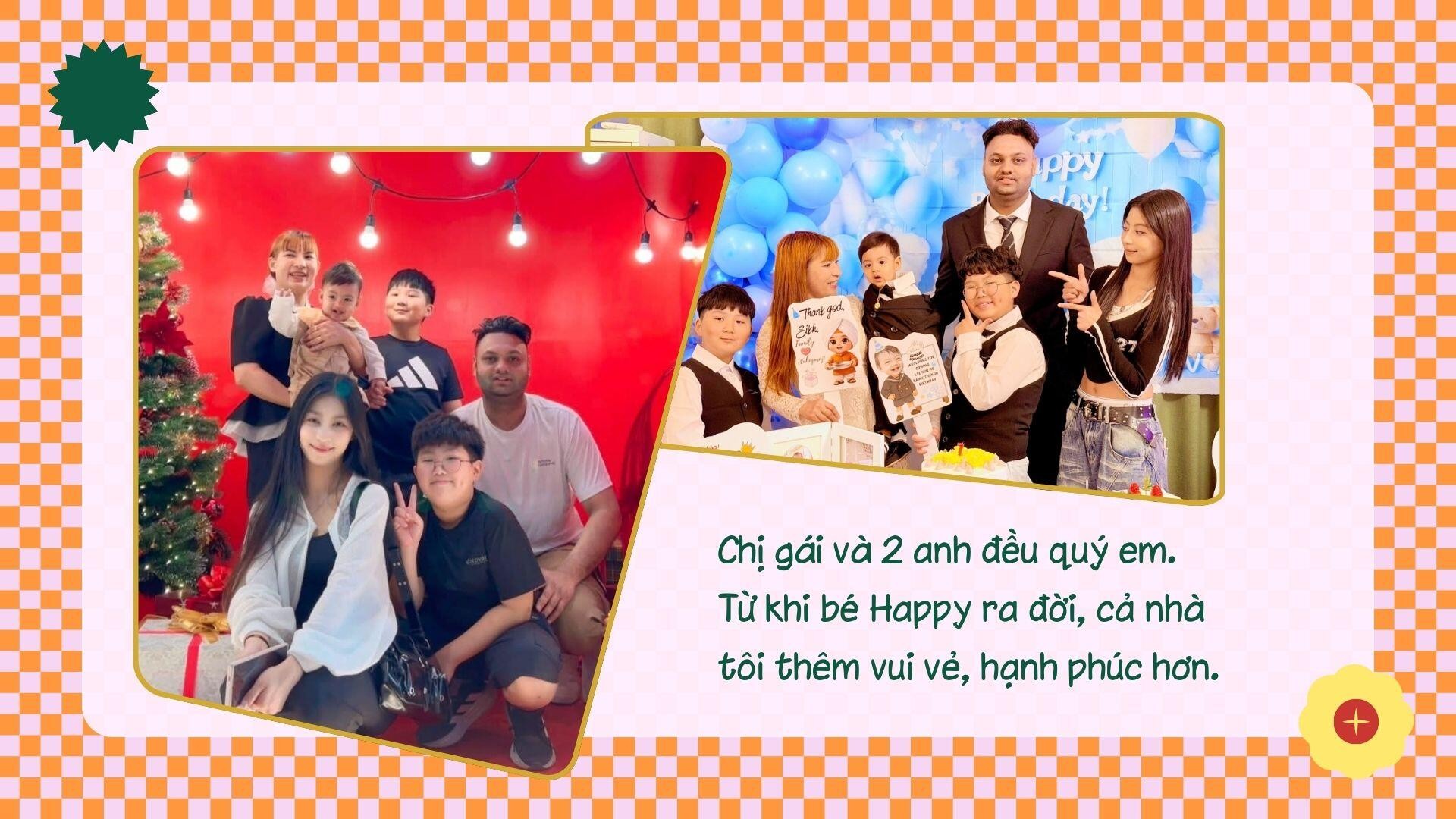 Sau khi kết hôn, vợ chồng chị Duyên vẫn định cư tại Hàn Quốc vì các con chị đang học ở đây. Cách đây 1 năm, chị Duyên cũng sinh cho chồng Ấn Độ một cậu con trai kháu khỉnh tên là Happy. “Chị gái và 2 anh đều quý em. Từ khi bé ra đời, cả nhà tôi thêm vui vẻ, hạnh phúc hơn”, mẹ 4 con nói.