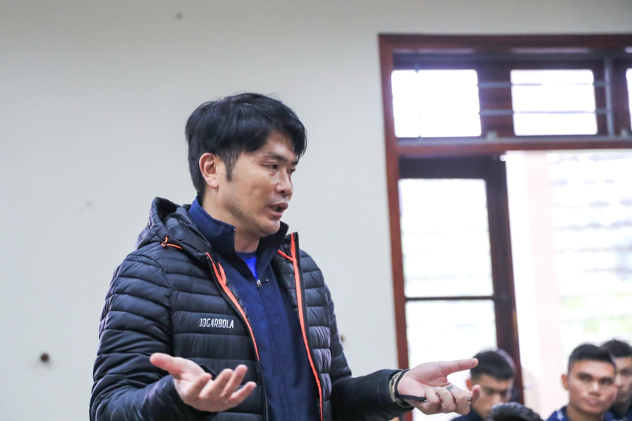 HLV Daiki Iwamasa truyền đạt chiến thuật đến các cầu thủ Hà Nội FC. Ảnh: Hà Nội FC.