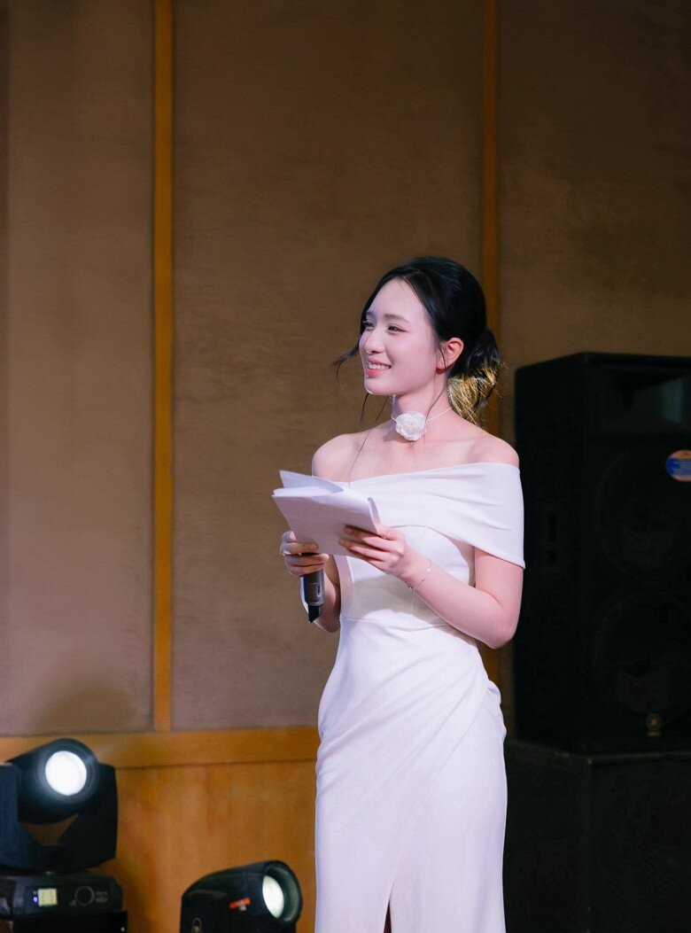 Cô thường lựa chọn váy ôm dáng, đầm dài hoặc áo dài để tôn vóc dáng cao ráo, thanh mảnh. Những thiết kế có phom gọn gàng, ít chi tiết cầu kỳ giúp tổng thể trông tinh tế và "ăn điểm" về sự chỉn chu. Bảng màu của cô cũng khá an toàn nhưng hiệu quả, xoay quanh trắng, be, pastel hoặc các tông nhẹ, giúp làm nổi bật nét dịu dàng.