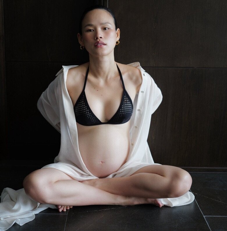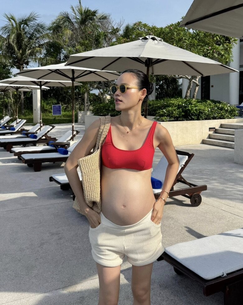 Vượt qua cơn nghén, sang các tháng tiếp theo của thai kỳ, nữ siêu mẫu xây dựng lối sống khoa học hơn. Cô duy trì chế độ ăn uống cân bằng, ưu tiên rau xanh, trái cây, protein sạch từ cá, trứng, hải sản, đồng thời hạn chế thực phẩm không cần thiết. Nhờ đó, dù tăng khoảng 12 - 15kg, vóc dáng mẹ bầu vẫn giữ được sự gọn gàng, săn chắc.