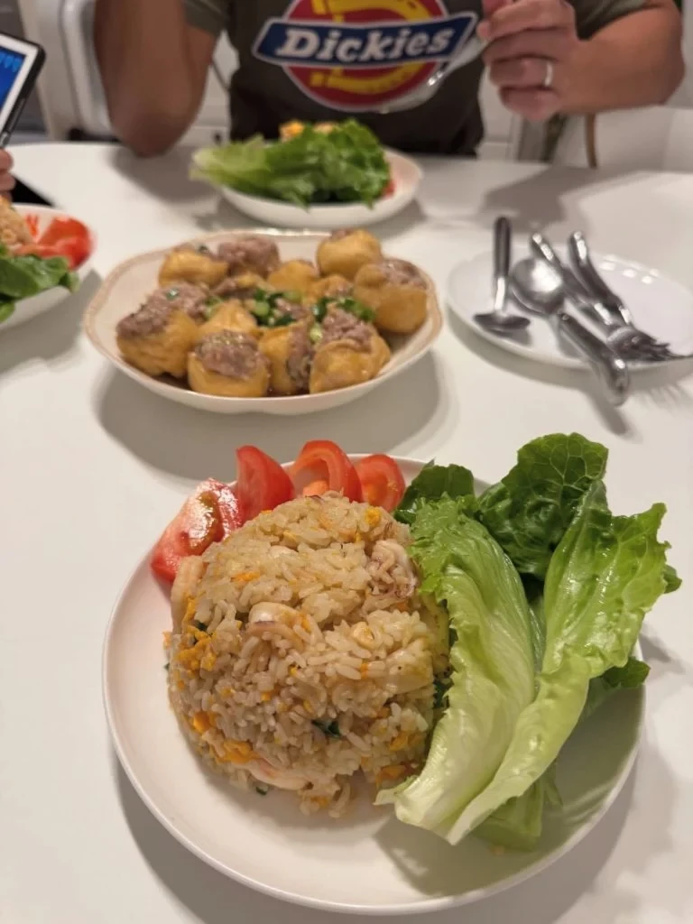 Trong bữa tối hôm đó, khi cắn miếng đậu phụ nhồi thịt, chồng cô bất ngờ thốt lên: “Chưa chín!”.