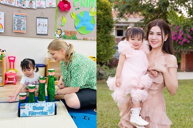 Tại đây, Lita được học tập và vui chơi cùng giáo viên nước ngoài. Nữ diễn viên cho biết, việc cho con tiếp xúc với tiếng Anh từ nhỏ nhằm tạo tiền đề tốt cho quá trình phát triển sau này. Qua những hình ảnh chia sẻ, bé Lita tỏ ra khá dạn dĩ khi tham gia nhiều hoạt động như dán thiệp, phân biệt các loài cá và đi picnic ngay trong sân trường.