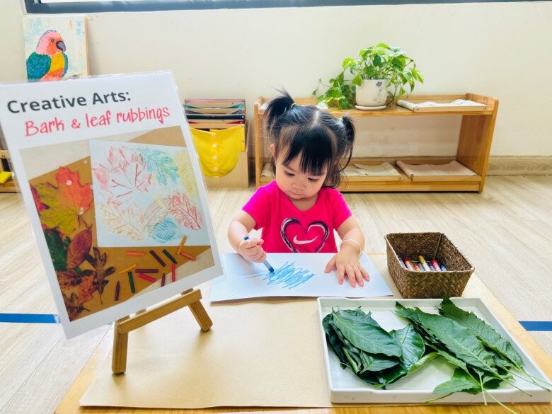 Nhóc tì hào hứng tham gia các môn học sáng tạo ở trường.