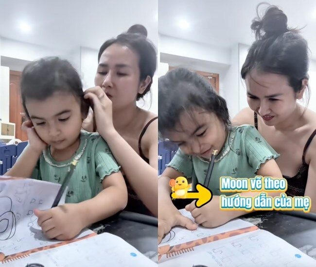 Trong đoạn video được đăng tải, bé Moon gây ấn tượng với sự chăm chú và đáng yêu khi ngồi học cùng mẹ. Dù còn nhỏ nhưng con gái Võ Hạ Trâm đã có thể tự tay viết những nét chữ đầu đời khá chuẩn chỉnh dưới sự hướng dẫn tận tình của mẹ. Cô bé cầm bút vững vàng, tỉ mỉ nắn nót từng nét chữ, thể hiện sự kiên nhẫn và tập trung đáng khen.