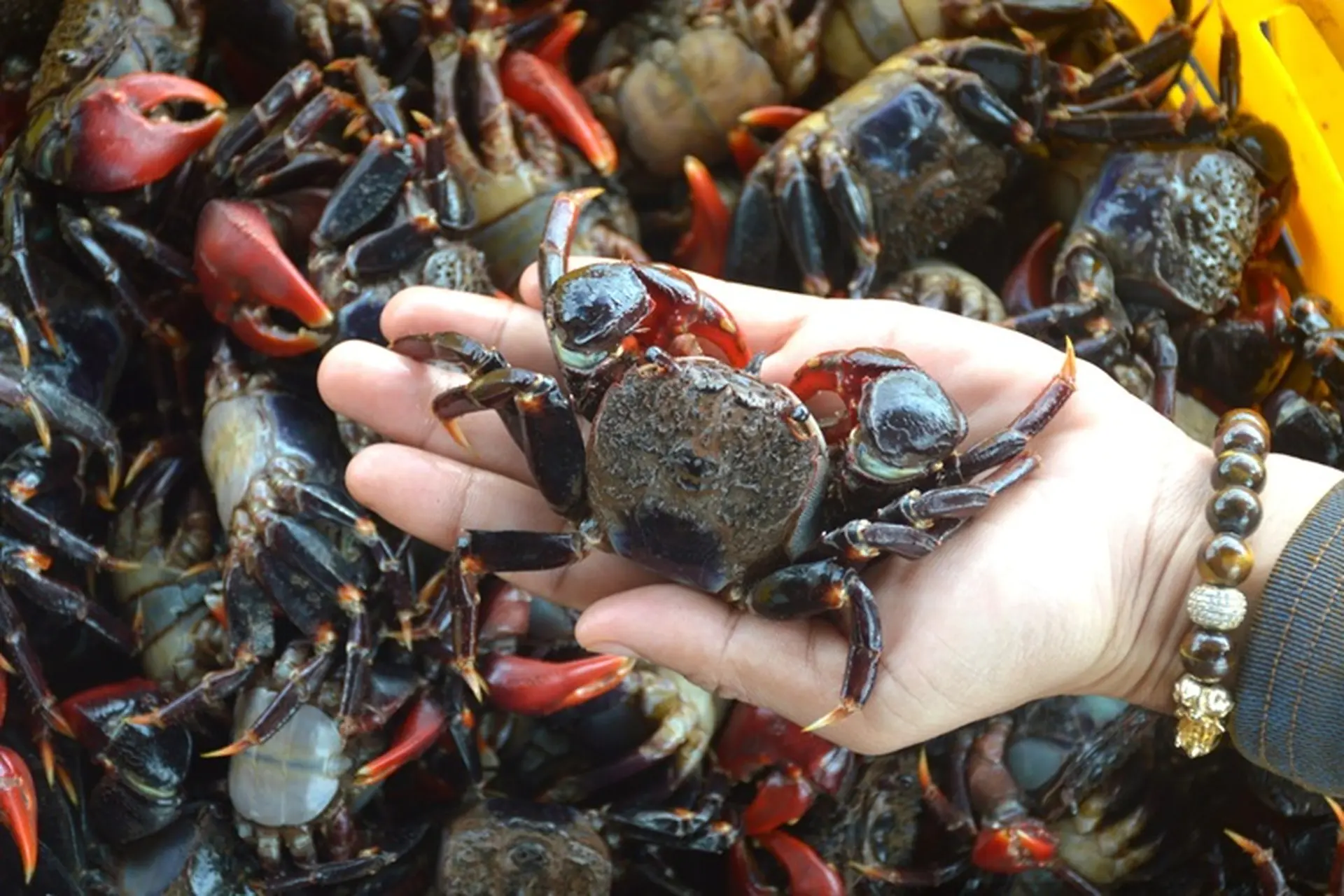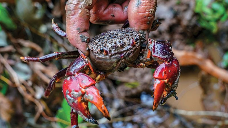 Nếu nhìn kỹ, chù ụ có điểm dễ nhận ra là hai chiếc càng phía trước khá to, nổi bật, thường mang màu đỏ. Một con trưởng thành có thể nặng khoảng 100-200g. Kích thước không quá lớn nhưng bù lại phần thịt khá chắc, thơm và có độ ngọt đậm. Đặc biệt, khi vào mùa ngon, chù ụ còn có phần gạch béo, bùi, tạo nên sức hấp dẫn mà nhiều thực khách đánh giá là không thua kém những món cua đồng hay cua biển quen thuộc.