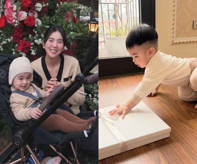 Con trai Mai Ngọc còn bé xíu đã được “đập hộp” đồ hiệu.