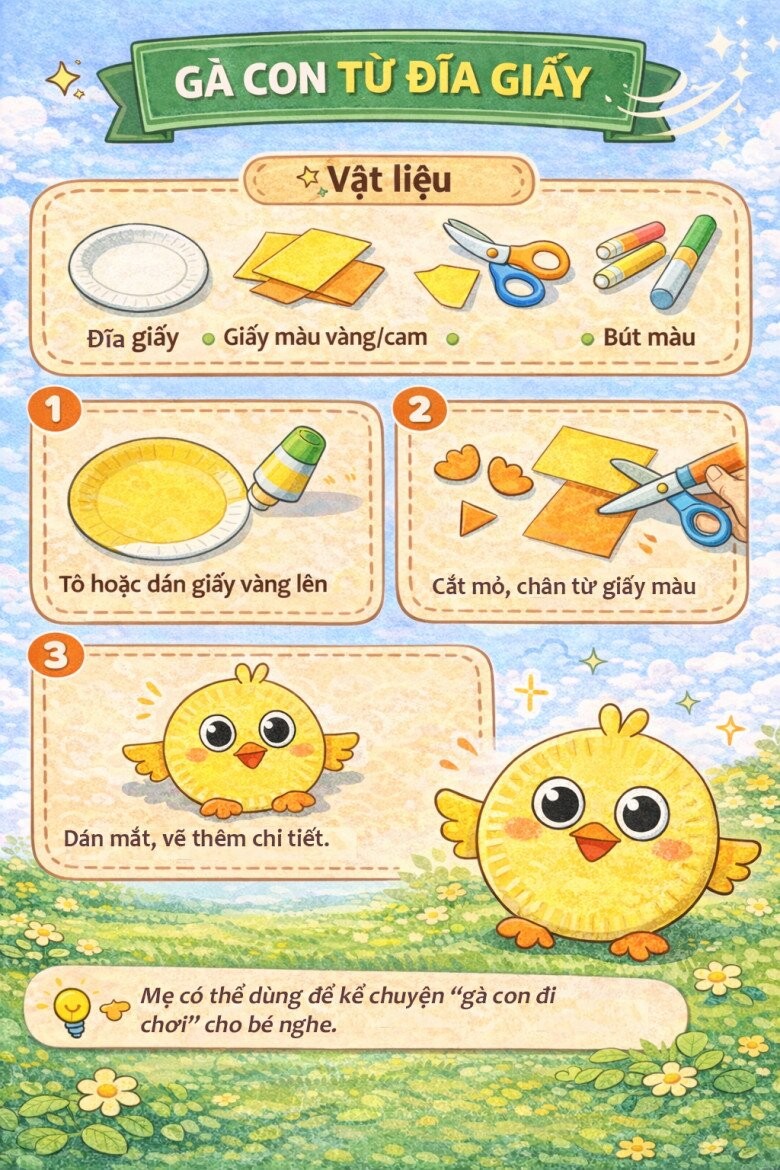 Gà con từ đĩa giấy