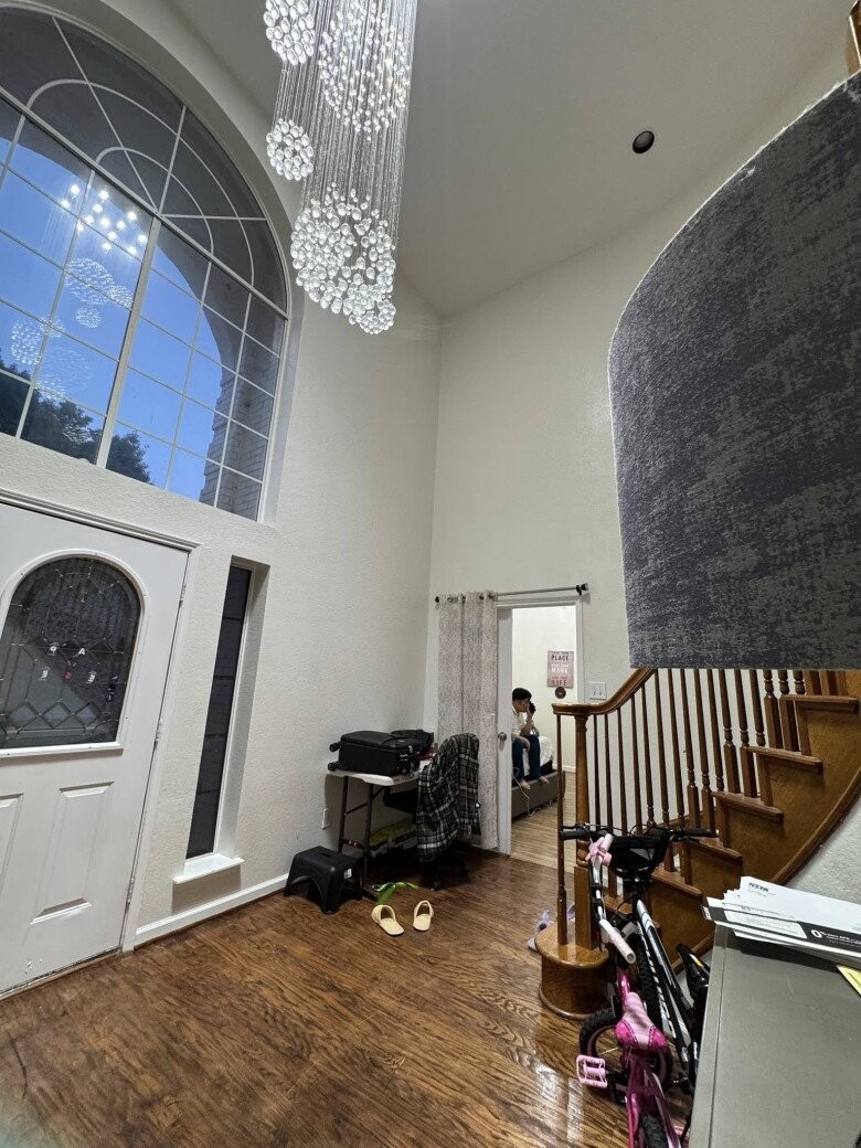 Bên trong nhà khá rộng rãi, nam ca sĩ không bài trí cầu kỳ nhưng ấm cúng. Trần nhà cao với đèn chùm pha lê lộng lẫy, cửa kính lớn đón ánh sáng tự nhiên. Không gian yên bình khiến Đan Trường nảy ý định để hiện thực hóa dự định trồng rau, nuôi cá trong tương lai.