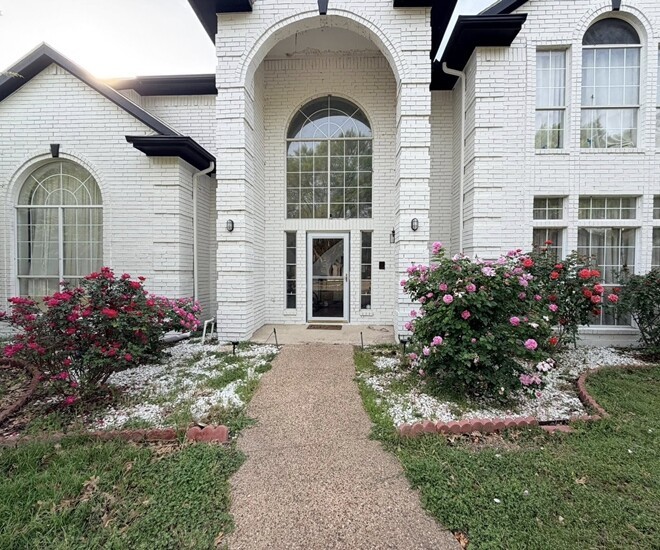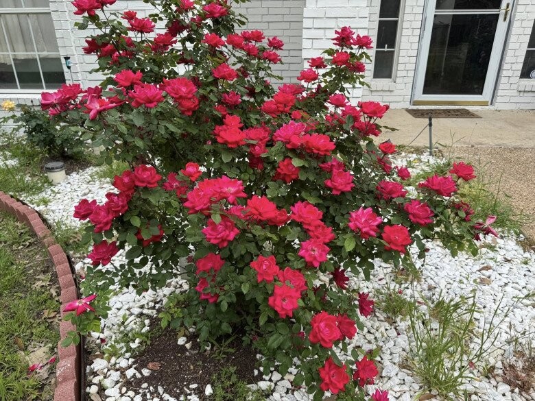 Bên cạnh tông hồng dịu dàng, khu vườn còn có sự xuất hiện của những bụi hồng đỏ thắm mang vẻ đẹp cổ điển và quý phái. Sự kết hợp giữa màu gạch trắng của biệt thự và sắc hoa đỏ rực tạo nên khung cảnh thơ mộng như trong phim.