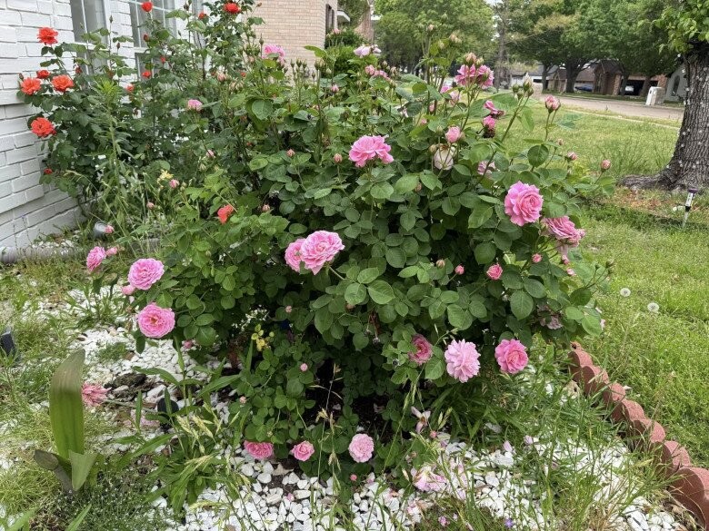 Giống hồng leo với cánh hoa dày, mang sắc hồng cánh sen ngọt ngào phủ kín một góc vườn. Hoa nở đều tăm tắp và tạo thành một thảm thực vật vô cùng đẹp mắt ngay sát chân tường nhà.