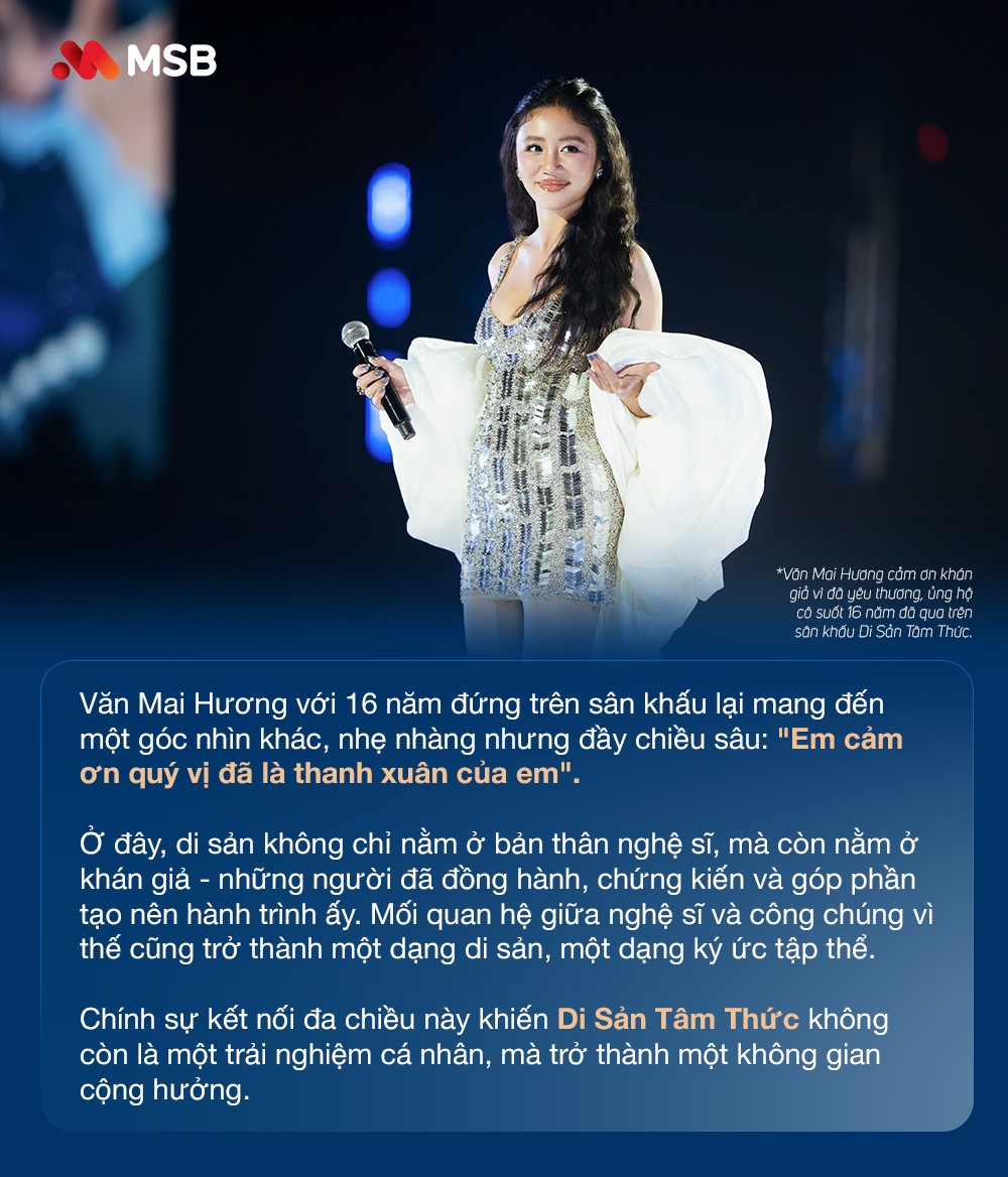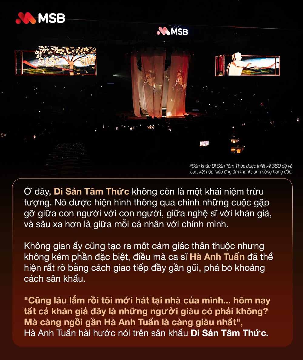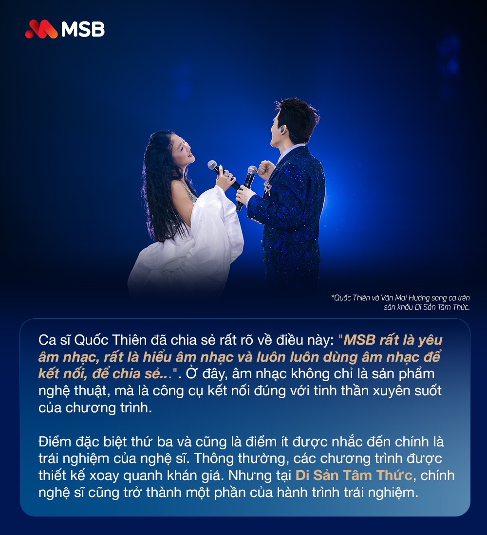 Nếu ở nhiều nơi, "di sản" thường được gắn với những giá trị vật chất hoặc những chuẩn mực mang tính biểu tượng, thì trong cách tiếp cận của MSB, "di sản" lại được đặt ở một không gian gần gũi hơn, đó chính là "tâm thức". Đó là nơi lưu giữ những ký ức đẹp, những giai điệu đã từng đi qua cuộc đời mỗi người, và cả những giá trị nhân văn được bồi đắp qua thời gian.