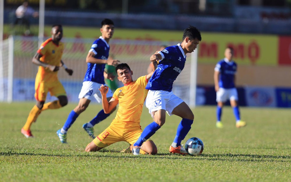 DNH Nam Định (xanh) nhận thất bại 0-1 trên sân Thanh Hoá ở vòng 5 và rơi xuống đáy BXH V-League. Ảnh: VPF.
