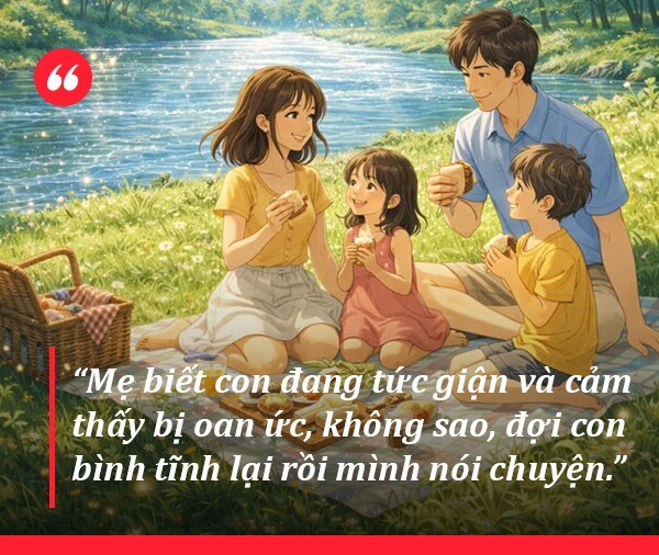 Đồng cảm và chấp nhận, làm dịu cảm xúc: “Mẹ biết con đang tức giận và cảm thấy bị oan ức, không sao, đợi con bình tĩnh lại rồi mình nói chuyện.”