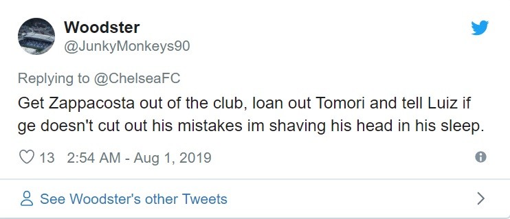 Đưa Zappacosta ra khỏi CLB, mang Tomori cho mượn và nói với Luiz rằng nếu không chấm dứt những sai lầm của mình, tôi sẽ cạo đầu trong giấc mơ của anh ta.