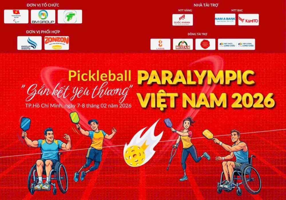 Dự kiến diễn ra trong hai ngày 7 và 8/2, Giải Pickleball Paralympic Việt Nam 2026 đánh dấu bước tiến mới của thể thao người khuyết tật Việt Nam trên hành trình chuyên nghiệp hóa và hội nhập khu vực. Với chủ đề “Gắn kết yêu thương”, giải đấu không chỉ hướng đến giá trị cộng đồng mà còn đặt trọng tâm vào tinh thần thi đấu, bản lĩnh và khát vọng vươn lên của các vận động viên.