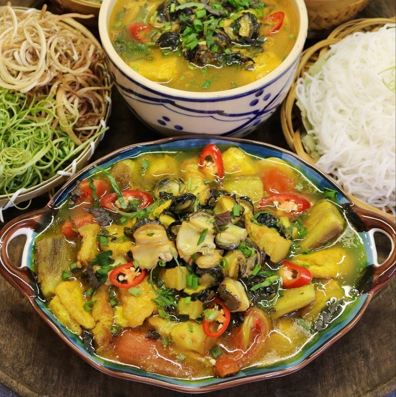 Ốc nấu chuối đậu là một món canh thơm ngon, có màu sắc bắt mắt, hương vị đậm đà vô cùng bắt cơm. Phần nước có vị chua thanh xen lẫn với vị ngọt nhẹ, chuối xanh bùi bùi, ăn cùng thịt ốc gia giòn sật sật.