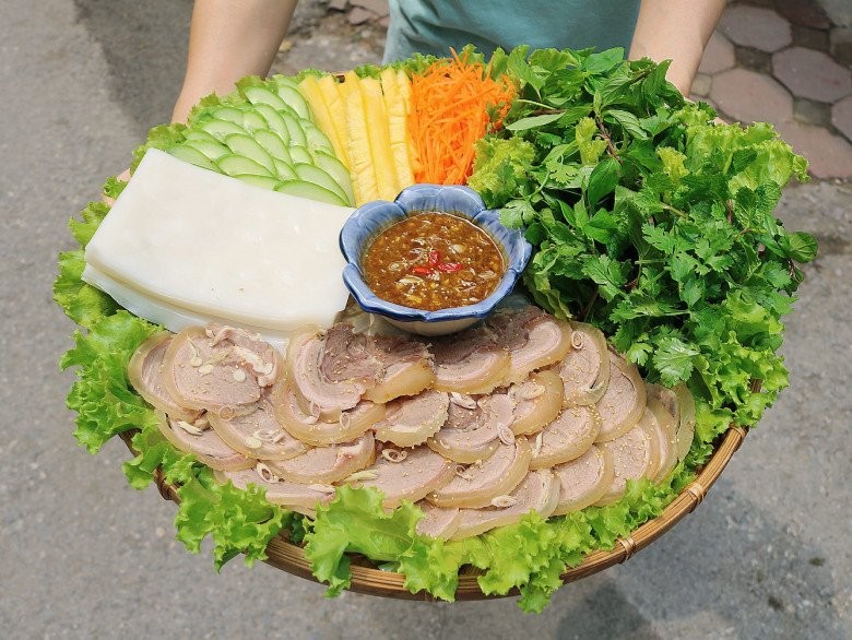 Bạn có thể biến tấu, cuốn thêm nem tai với thịt chua, nem chua... cùng bún và rau thơm cũng rất hấp dẫn.