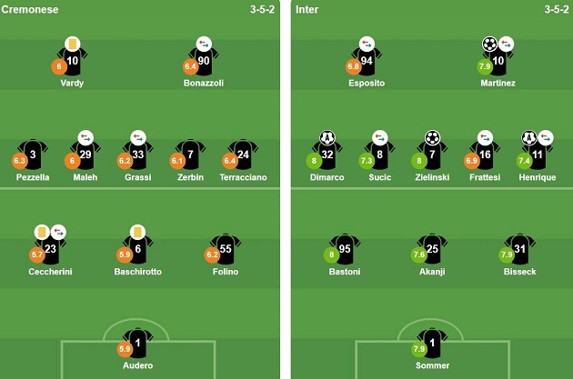 Kết quả chung cuộc: Cremonese 0-2 Inter