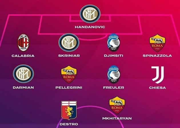 Tiền vệ phải: Matteo Darmian. Ngoài việc theo kèm rất sát Lorenzo Insigne, cựu sao Manchester United còn trực tiếp mang về quả penalty, giúp Inter Milan đánh bại Napoli.