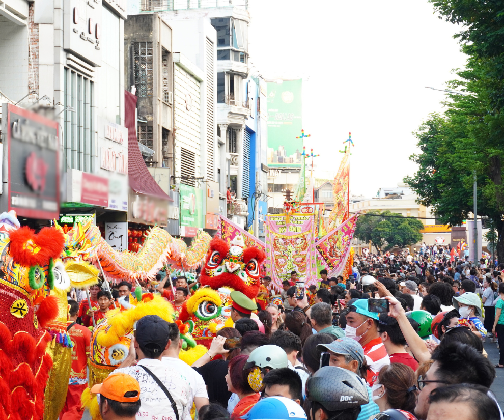 Từ 15h30 ngày 3/3 (tức Rằm tháng Giêng), người dân ở TP.HCM đã tập trung xếp hàng ở khu vực các đường Hải Thượng Lãn Ông, Châu Văn Liêm, Lão Tử, Lương Nhữ Học… để chờ đợi các đoàn diễu hành nghệ thuật đi qua các tuyến phố thuộc phường Chợ Lớn, An Đông, Chợ Quán.
