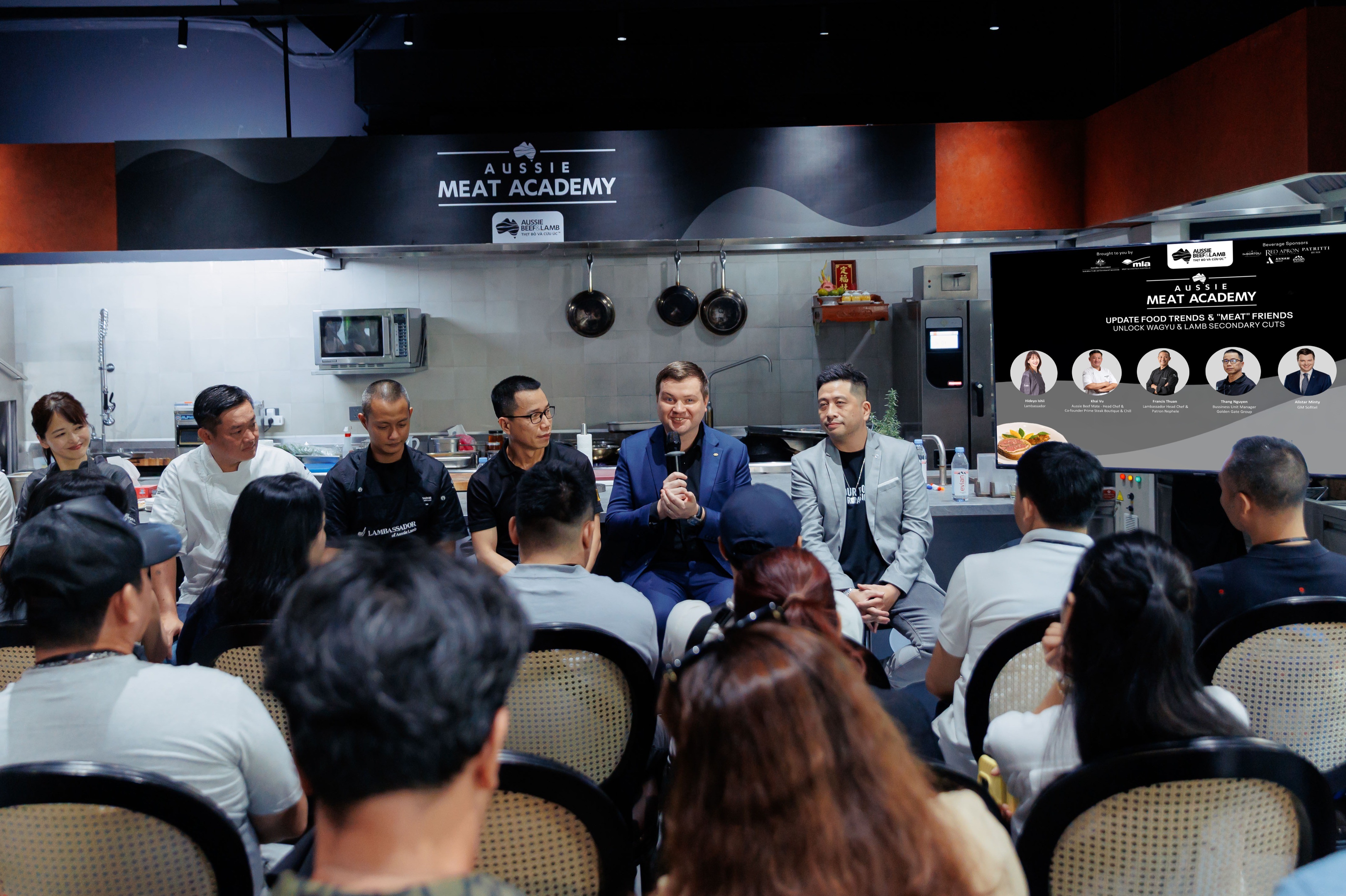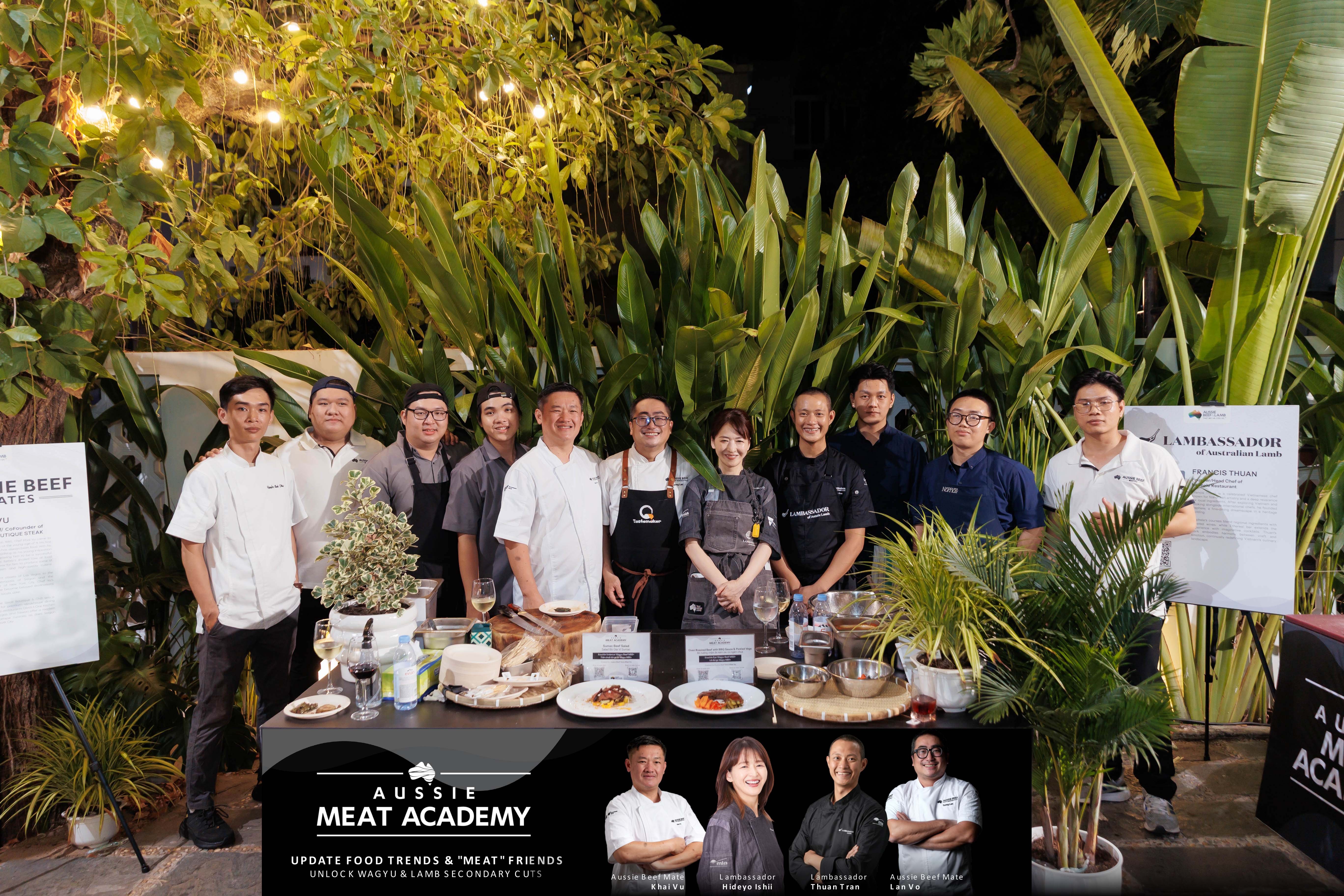 Sự góp mặt của các Đại sứ Thịt đỏ Úc tại Việt Nam và từ những nền ẩm thực nổi tiếng trong khu vực như Hideyo-ishi từ Nhật Bản, Jamie Lee từ Hàn Quốc, Khải Vũ (Prime Steak Boutique & Chill), Võ Trọng Tường Lân (Tastemaker Hub), Sam Trần (Gia) và Francis Thuận (Nephele) mang đến những góc nhìn gần gũi và thực tế hơn về cách ứng dụng thịt đỏ Úc trong bếp chuyên nghiệp.
