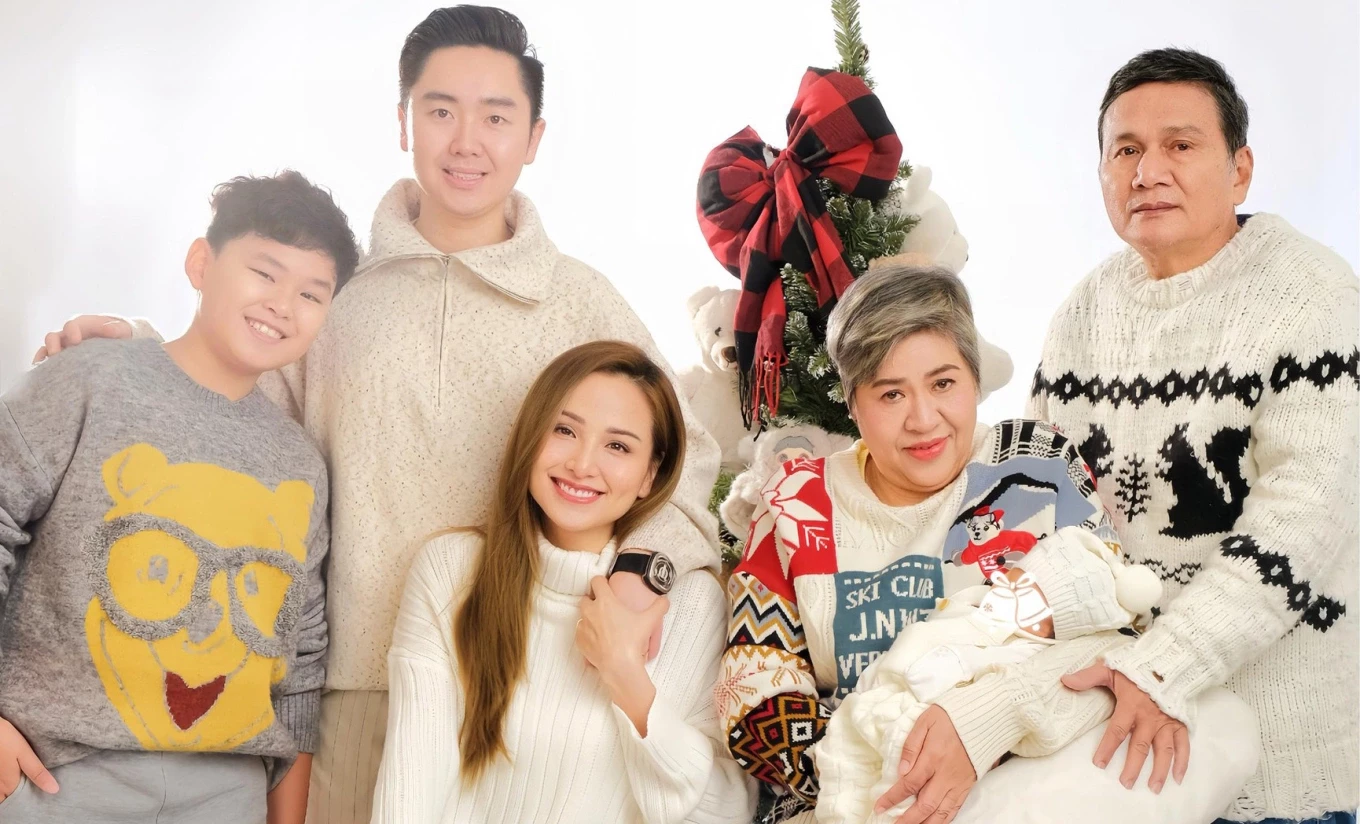 Tổ ấm hạnh phúc của Hoa hậu Diễm Hương bên các con và bố mẹ.