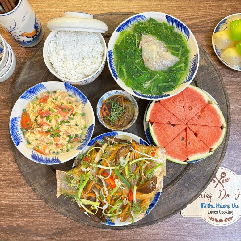 Tham khảo mâm cơm nhà chị Vũ Thu Hương để có thêm ý tưởng cho bữa cơm nhà mình. Mâm cơm này gồm các món: