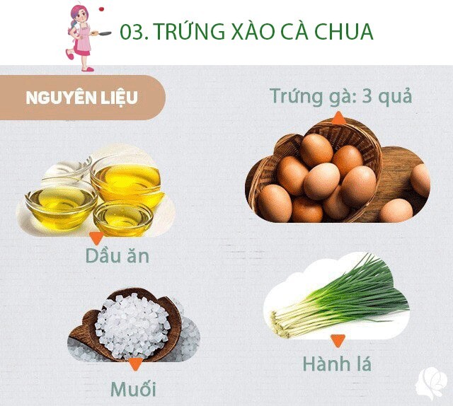 Chuẩn bị: 3 quả trứng - 2 quả cà chua cỡ nhỏ - 1 nhúm muối tiêu - ¼ chén dầu ăn; 1/8 muỗng cà phê đường; ½ muỗng cà phê muối; 1 nhánh hành lá thái nhỏ