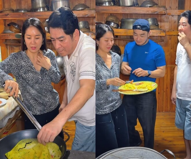 Dàn nghệ sĩ về thăm tài tử Huỳnh Anh Tuấn, cùng nhau làm món bánh xèo.