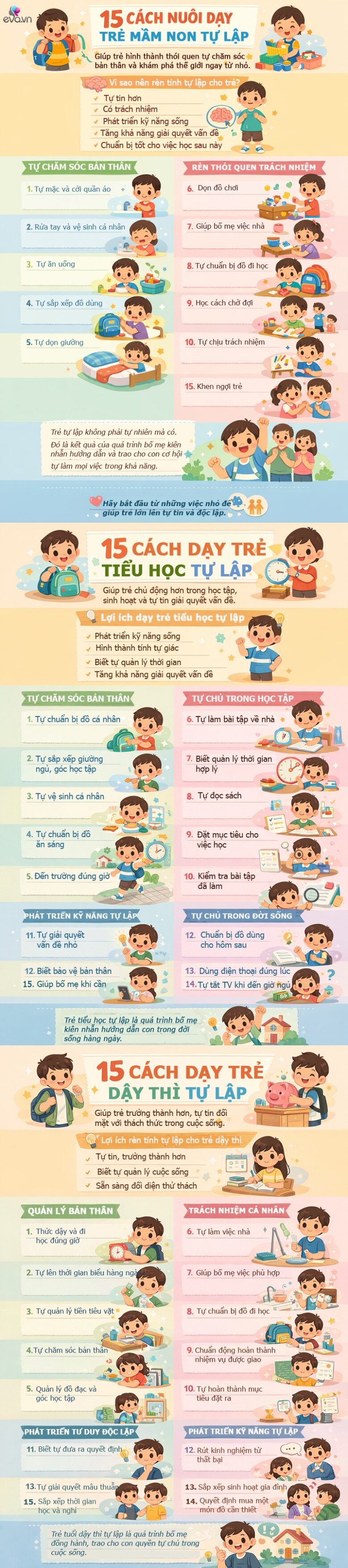 Tính tự lập là một trong những kỹ năng quan trọng giúp trẻ trưởng thành và tự tin bước vào cuộc sống. Tuy nhiên, khả năng tự lập của trẻ không thể hình thành trong một sớm một chiều mà cần được nuôi dưỡng dần dần qua từng giai đoạn phát triển. Mỗi độ tuổi của trẻ đều có những đặc điểm tâm lý và khả năng khác nhau, vì vậy cách dạy trẻ tự lập cũng cần phù hợp với từng giai đoạn.