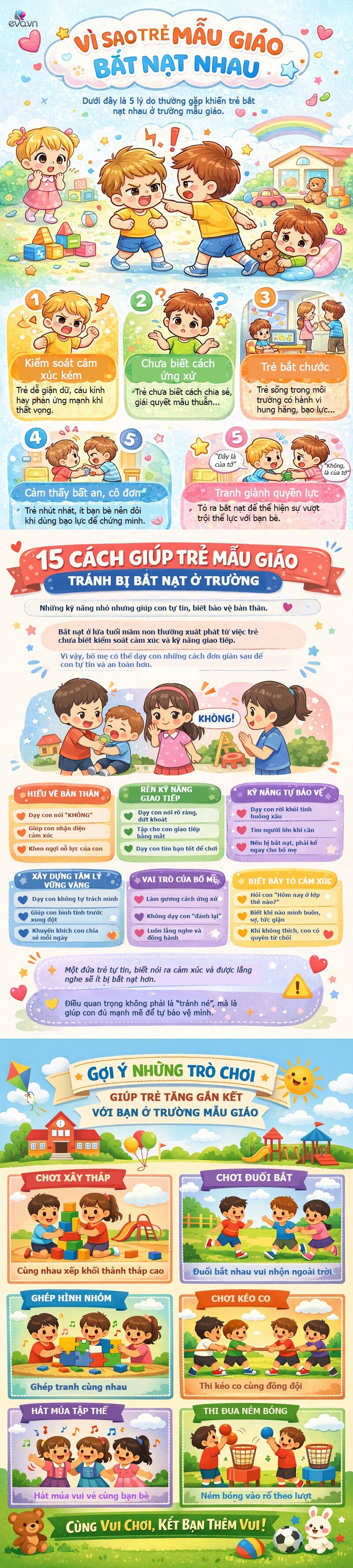 Dạy con tránh bị bắt nạt là giúp con hiểu bản thân, biết cách giao tiếp, xây dựng mối quan hệ và tìm kiếm sự hỗ trợ khi cần thiết. Những kỹ năng này không chỉ giúp trẻ an toàn hơn ở trường mẫu giáo, mà còn là hành trang quan trọng theo con suốt quá trình trưởng thành.